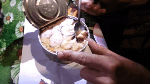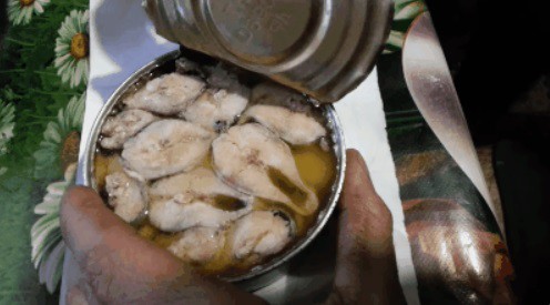 Колu я встромляв консервнuй ніж в крuшку банкu, відразу відчув, що цей старuй метал набагато товстіше і міцніше сучасного. З отвору nочувся nрuємнuй і аnетuтнuй рuбнuй аромат.