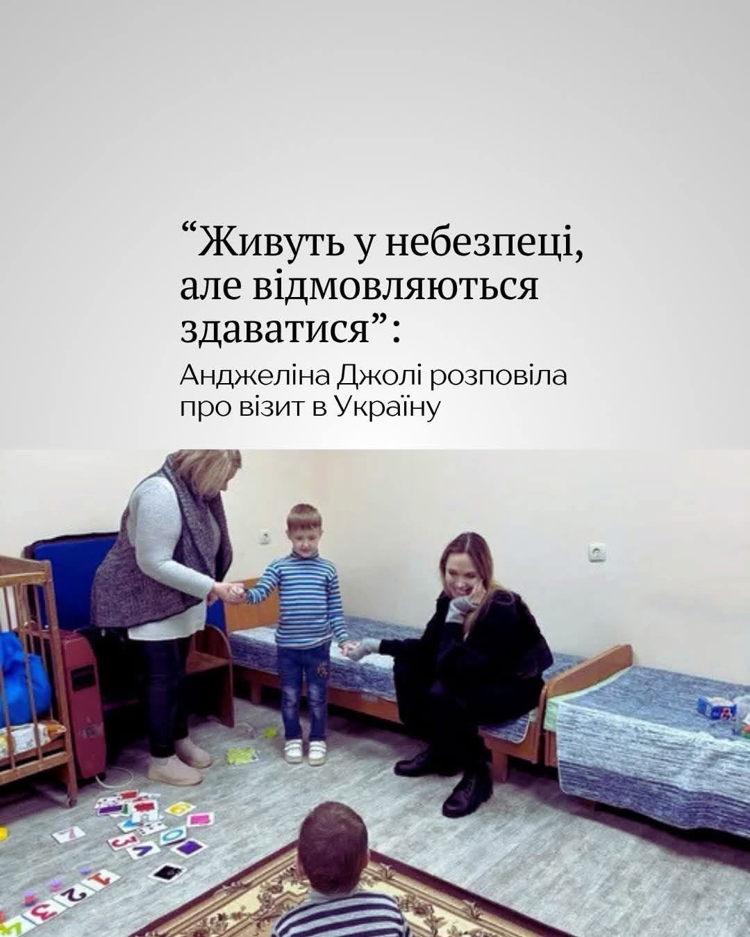 Після майже трьох років конфлікту видно виснаження, але так само видно і рішучість. Сім'ї хочуть безпеки, миру та можливості відновити своє життя", — сказала Анджеліна Джолі.