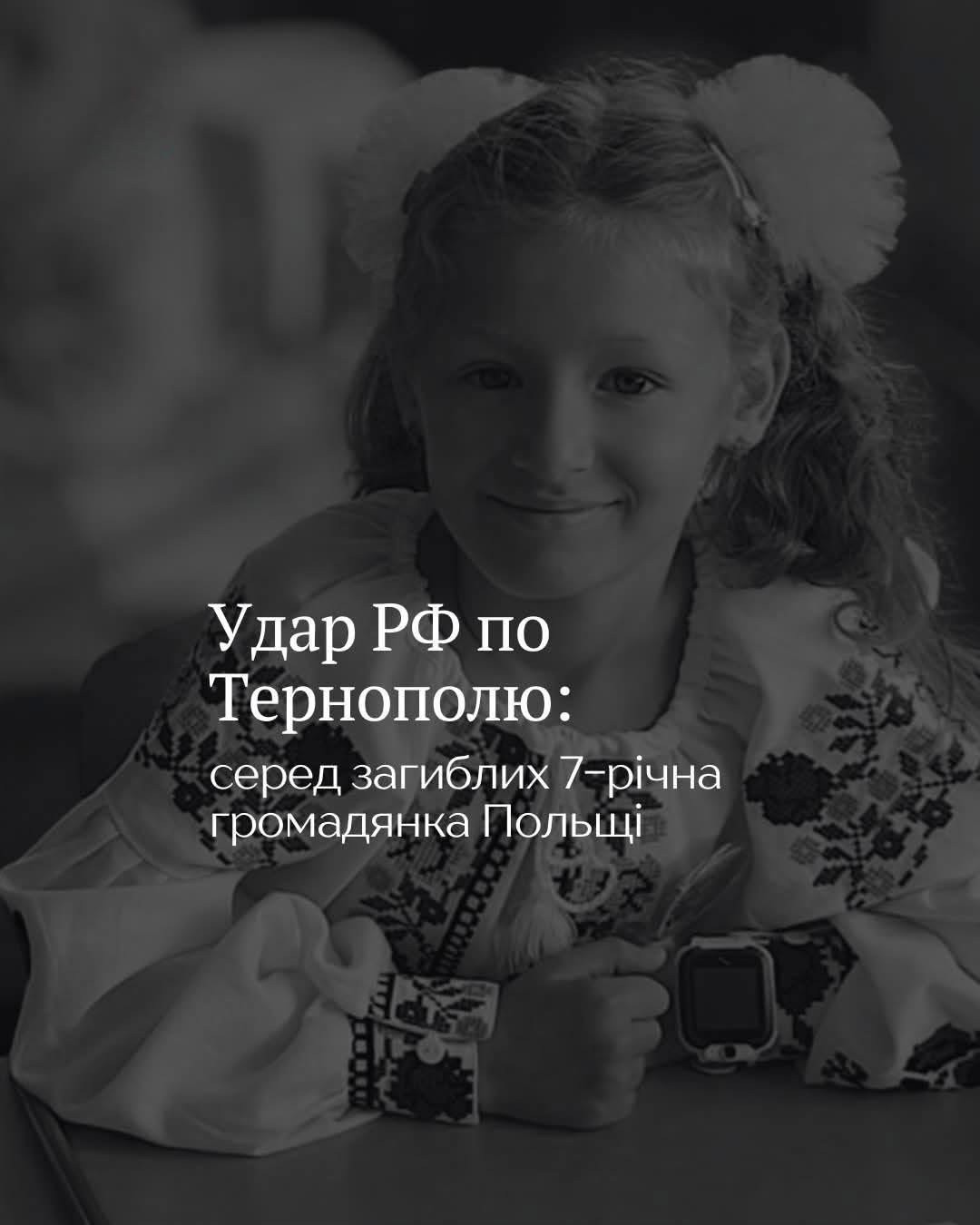 Внаслідок російського удару по Тернополю у загинула 7-річна Амелія, яка мала польське громадянство.