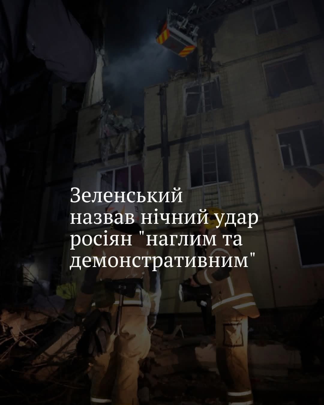 Володимир Зеленський назвав нічний удар в ніч на 8 листопада, коли росіяни запустили понад 500 цілей, з яких 80 влучили — демонстративним та нахабним.