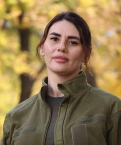 На початку вторгнення вона твердо перейшла на українську мову. Це, каже, був перший символ внутрішнього рішення. А наприкінці червня 2024 року зробила другий крок — приєдналася до 100-ї окремої механізованої бригади. Там стала діловодом — людиною, яка відповідає за документи, облік, соціальний захист, організацію процесів.