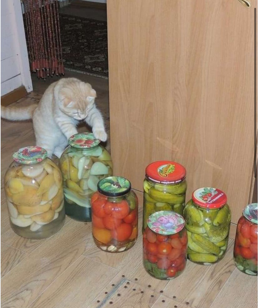 Так от, а тепер щодо закруток. Пані Наталка все зробить на кухні (де є коти), погано протирає та стерилізує банки. Деякі банки вона бере з-під магазинних закруток, але може їх хіба сполоснути водою, навіть без миючого засобу чи взагалі рушником протерти. Раз ми відкрили лечо – а там з внутрішньої банки шерсть кота. І ті “гостинці” полетіли в смітник одразу. Я взагалі тоді аж перехотів вечерятиВсі овочі (добре, що помиті) теща викладає на рушник. Але то вже не рушник, а якась шматка – весь у дірках, жирних плямах, так тхне, що нудити починає. Наталія Василівна ним і руки витирає, і стіл від крихт, і тарілки, і навіть вікна, стільницю та кутики від пилюки чи павутини. Словом, рай для бактерій та грибка. І на тому рушнику сохнуть овочі!