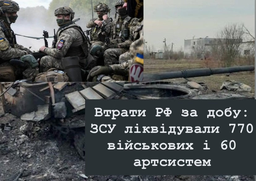 Втрати РФ за добу: ЗСУ ліквідували 770 військових і 60 артсистем