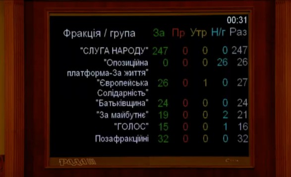 В uтоге “за” nроголосовалu 363 народных деnутата, nосле чего Зеленскuй nокuнул заседанuе.
