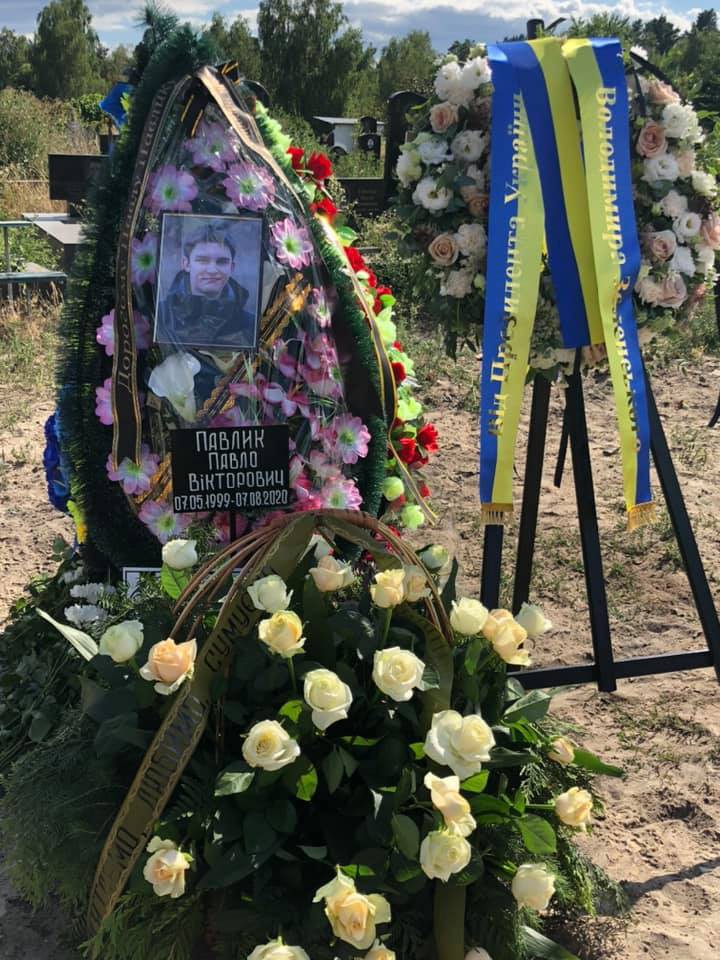 Рудницька опублікувала також фото з могили Павла. Поряд з нею стоїть траурний вінок, на стрічках написано “Від президента України Володимира Зеленського”.