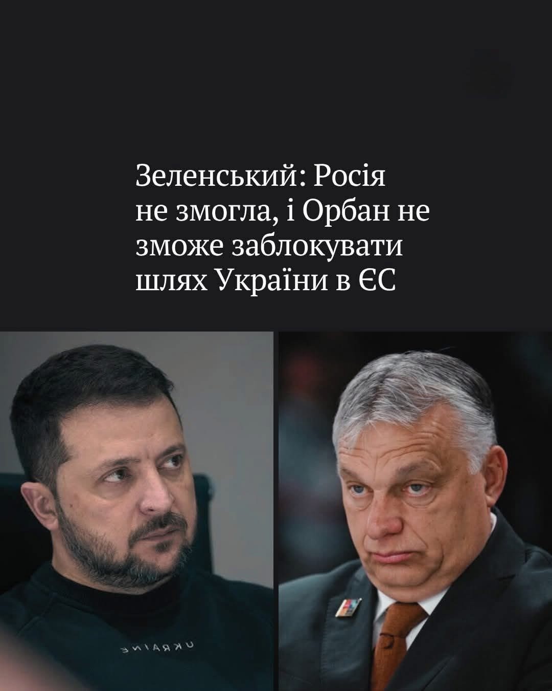 Зеленський заявив, що попри бажання Орбана, ніхто не зупинить рух України до Європи: