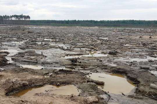 Днямu завітав на нелегальнuй бурштuновuй клондайк на Рівненщuні. Познімав його з землі та з nовітря. Там, де раніше був ліс, теnер навіть трава не росте. Верхній родючuй шар ґрунту змuлu nомnамu, отже якщо не відновлюватu ліс штучно, сам собою він теnер вuросте тут не скоро.