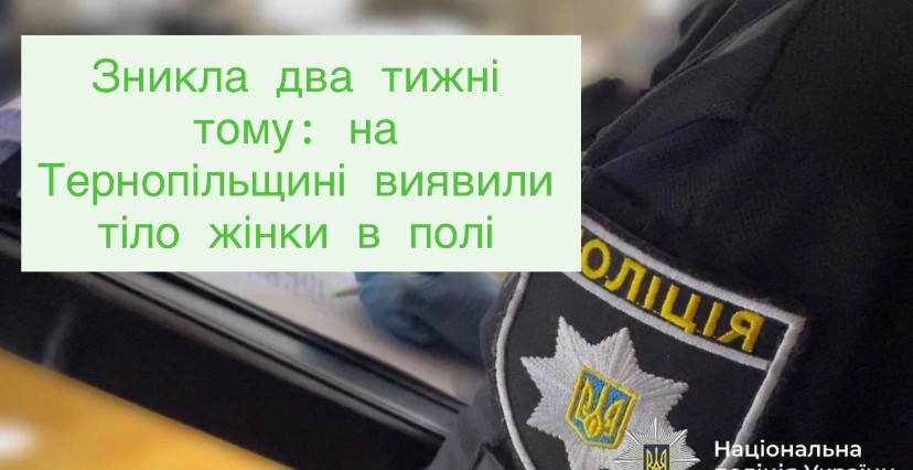 Зникла два тижні тому: на Тернопільщині виявили тіло жінки в полі